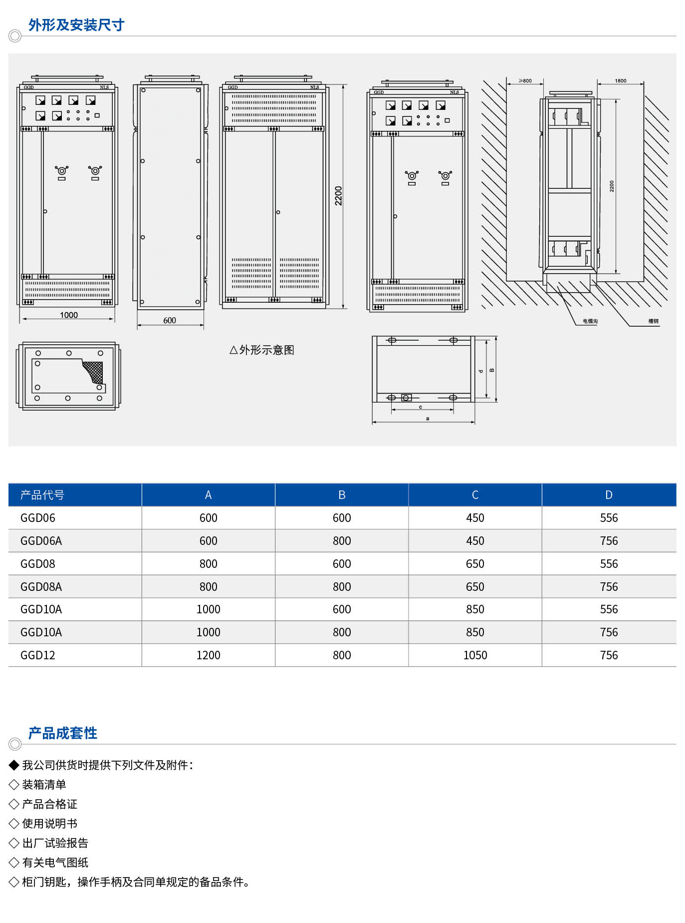 GGD交流低压固定式开关柜适用于发电厂、变电站、厂矿企业等电力用户的交流50HZ,额定工作电压380V,额定工作电流至3150A的配电系统,作为动力、照明及配电设备的电能转换、分配与控制之用。GGD交流低压固定式开关柜是根据能源部主管上级与广大电力用户及设计部门的要求,本着安全、经济、合理、可靠的原则设计的新型低压配电柜。产品具有分断能力高、动热稳定性好、电气方案灵活、组合方便、系列性、实用性强、结构新颖、防护等级高等特点,可作为低压成套开关设备的更新换代产品使用。GGD交流低压固定式开关柜符合EC439《低压成套开关设备和控制设备》,GB7251《低压成套开关设备》等标准。