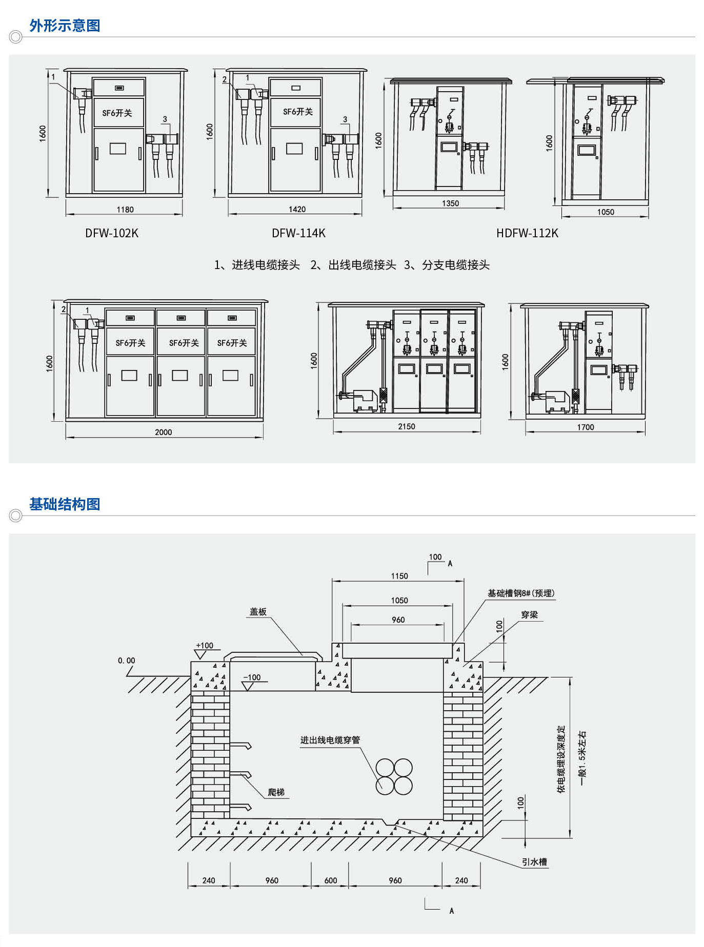 功能特点:采用预制式带电可触摸硅橡胶电缆头,全密封、全绝缘、免维护,可靠保证人身安全。结构紧凑,外形小巧美观,不锈钢双层稻体,使用寿命可达二十年以上;在不影响主网运行的前提下,实现区域停电检修,减小停电范围;可配一台或多台SF6负荷开关。接线方式灵活多样,分支出线可达8回路;可选避雷器、短路故障指示器、限流熔断器等,满足用户各种要求。